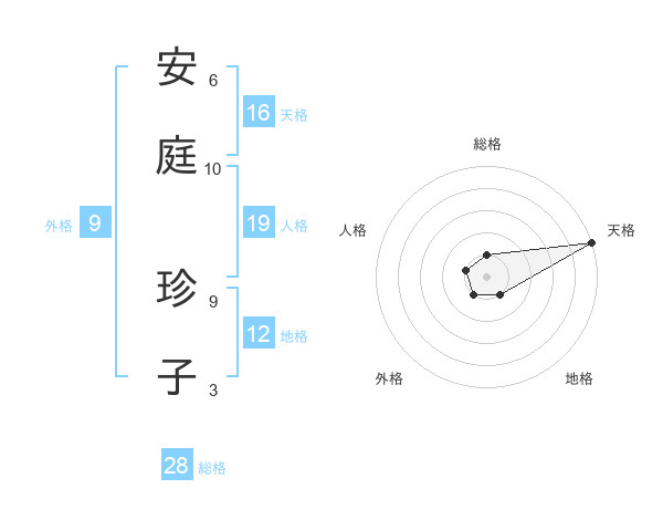 安庭 珍子さんの総格は28画の1点!
