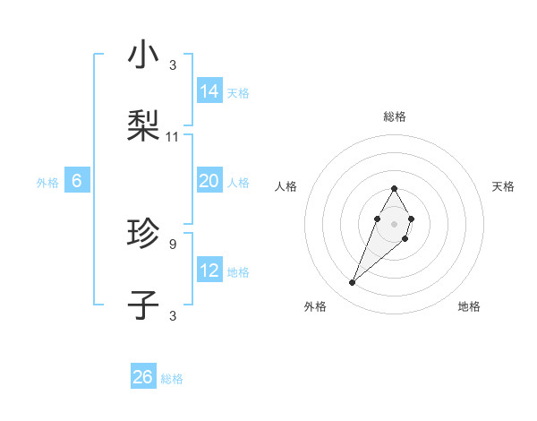 小梨 珍子さんの総格は26画の2点!