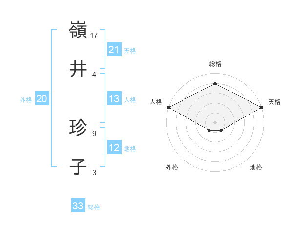 嶺井 珍子さんの総格は33画の4点!