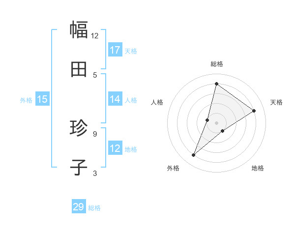 幅田 珍子さんの総格は29画の4点!