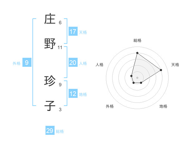 庄野 珍子さんの総格は29画の4点!