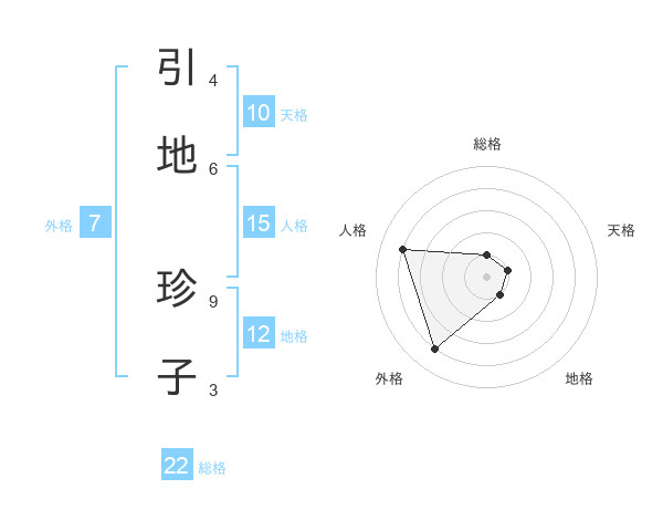引地 珍子さんの総格は22画の1点!
