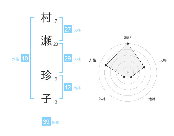 村瀬 珍子さんを姓名の画数から五運を鑑定