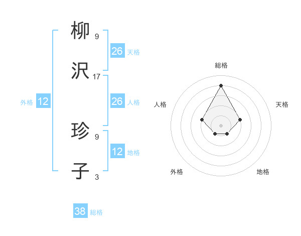 柳沢 珍子さんを姓名の画数から五運を鑑定