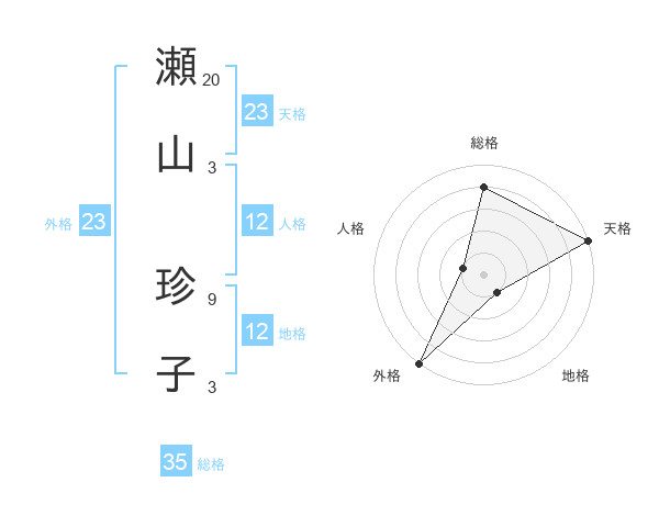 瀬山 珍子さんの天格は23画の5点!