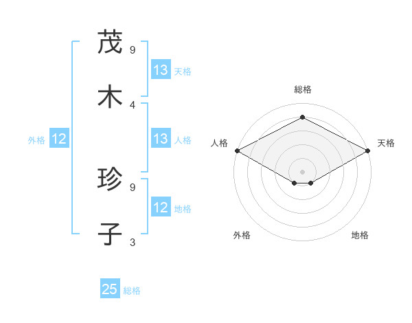 茂木 珍子さんを姓名の画数から五運を鑑定