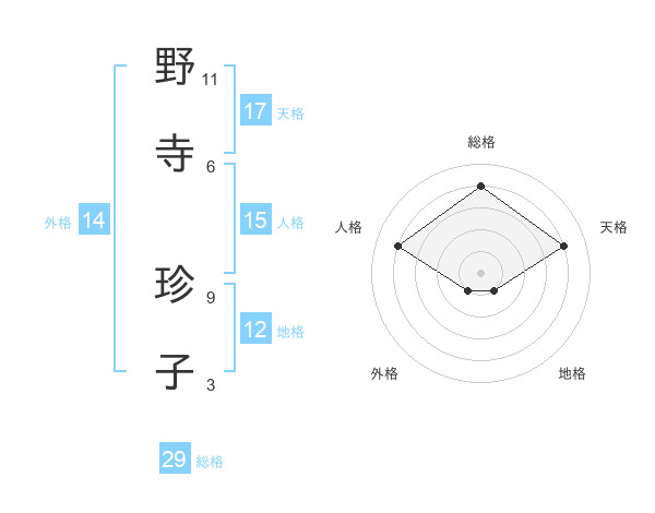 野寺 珍子さんの総格は29画の4点!
