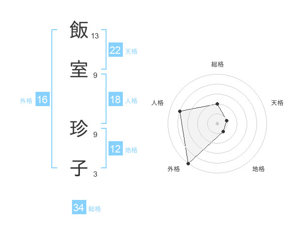 飯室 珍子さんを姓名の画数から五運を鑑定