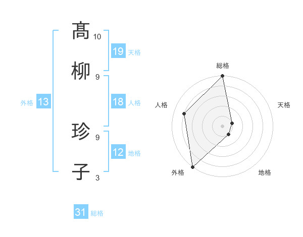 髙柳 珍子さんの総格は31画の5点!