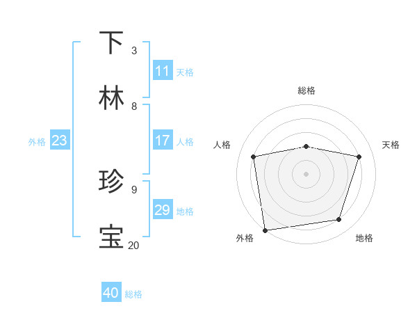 下林 珍宝さんの外格は23画の5点!