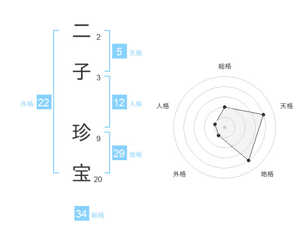 二子 珍宝さんの地格は29画の4点!