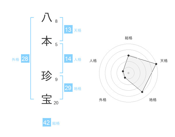八本 珍宝さんを姓名の画数から五運を鑑定