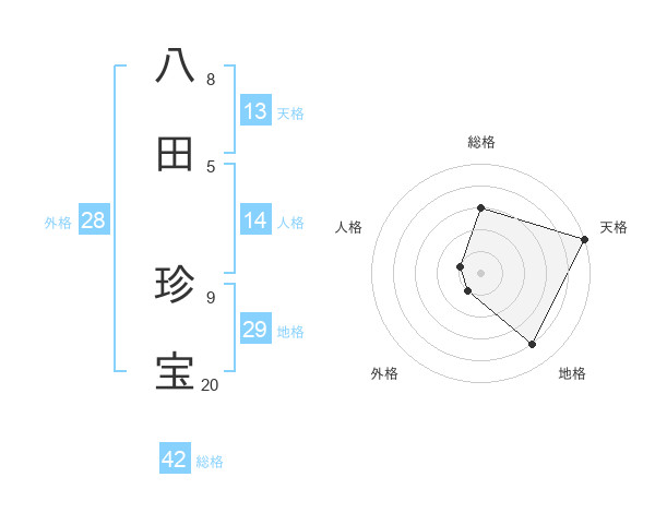 八田 珍宝さんを姓名の画数から五運を鑑定