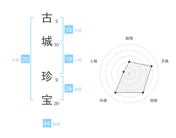 古城 珍宝さんの総格は44画の2点!