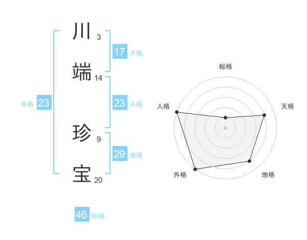 川端 珍宝さんの外格は23画の5点!