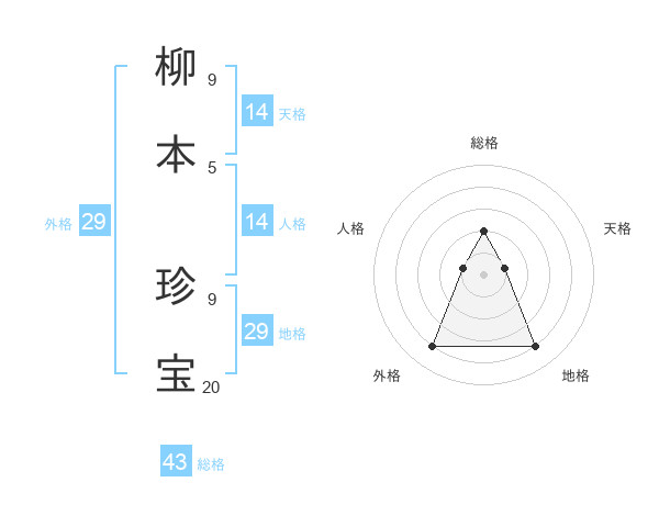 柳本 珍宝さんの総格は43画の2点!