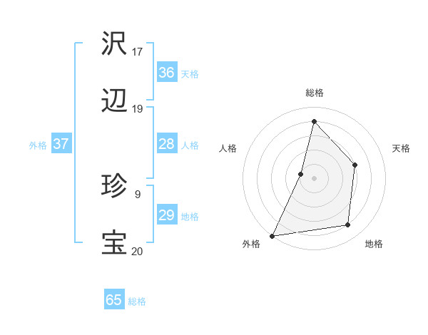 沢辺 珍宝さんの総格は65画の4点!
