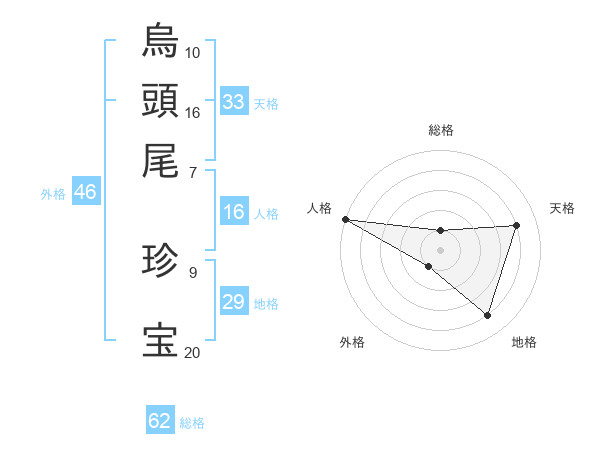 烏頭尾 珍宝さんを姓名の画数から五運を鑑定