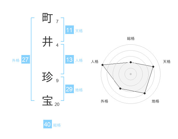 町井 珍宝さんを姓名の画数から五運を鑑定