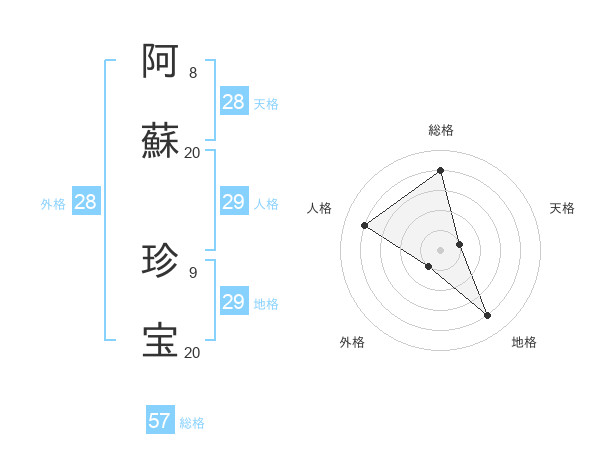 阿蘇 珍宝さんを姓名の画数から五運を鑑定