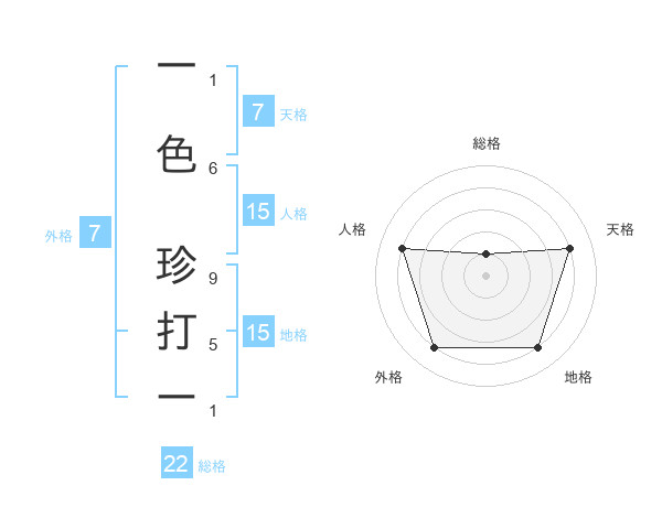 一色 珍打ーさんを姓名の画数から五運を鑑定