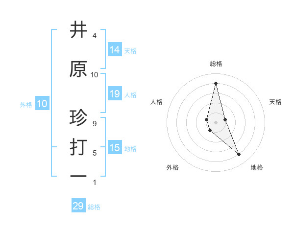 井原 珍打ーさんを姓名の画数から五運を鑑定