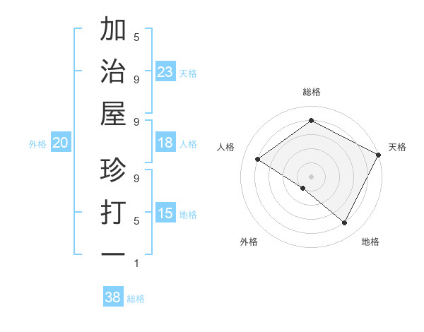 加治屋 珍打ーさんを姓名の画数から五運を鑑定