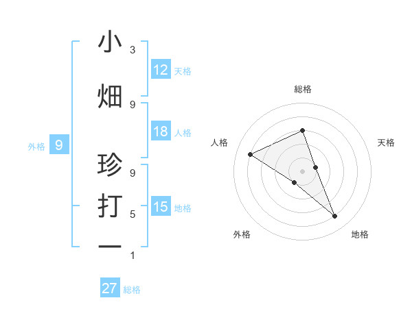 小畑 珍打ーさんの天格は12画の1点!