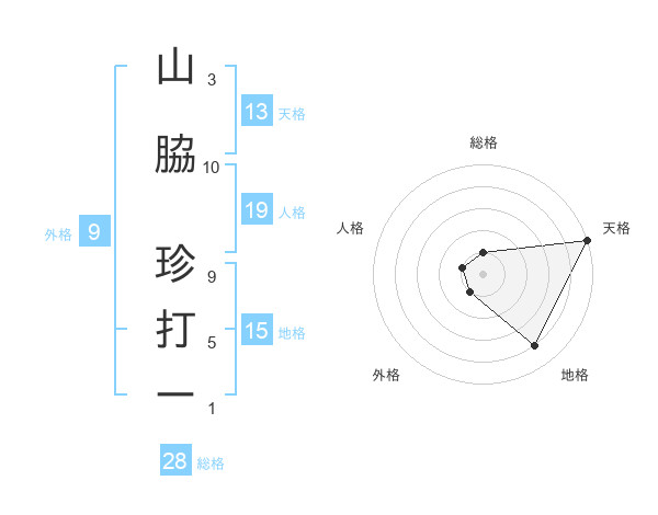 山脇 珍打ーさんを姓名の画数から五運を鑑定