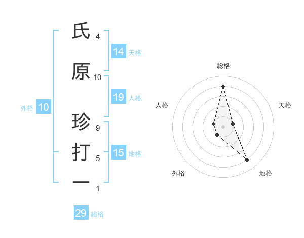 氏原 珍打ーさんを姓名の画数から五運を鑑定