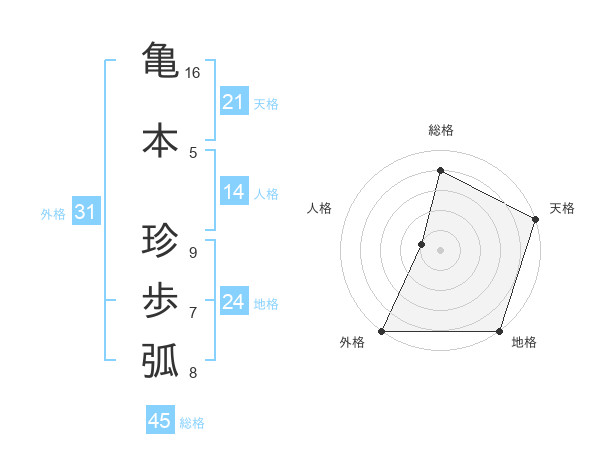 亀本 珍歩弧さんの天格は21画の5点!