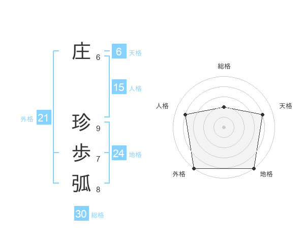 庄 珍歩弧さんの総格は30画の2点!