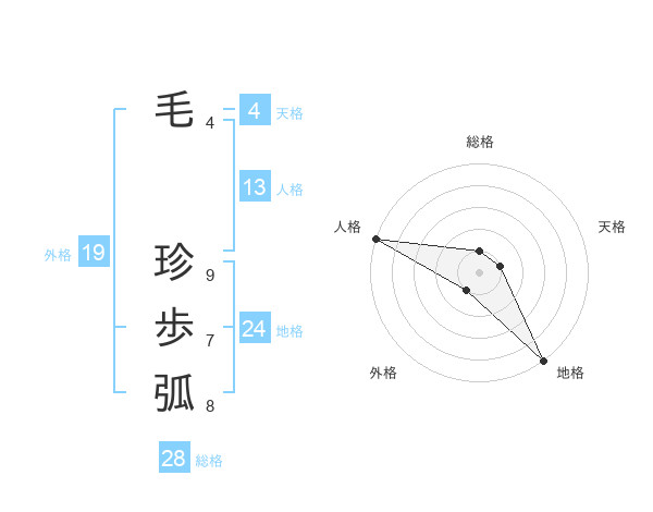 毛 珍歩弧さんを姓名の画数から五運を鑑定