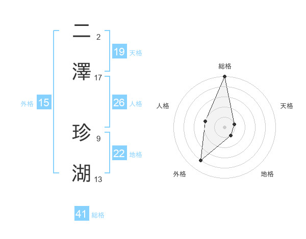 二澤 珍湖さんを姓名の画数から五運を鑑定