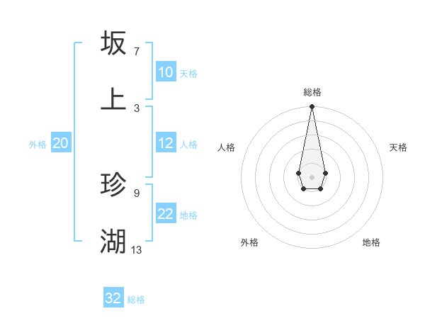 坂上 珍湖さんを姓名の画数から五運を鑑定