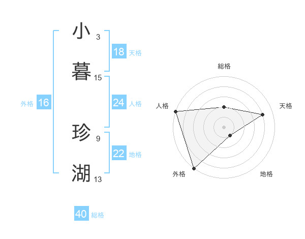 小暮 珍湖さんの天格は18画の4点!