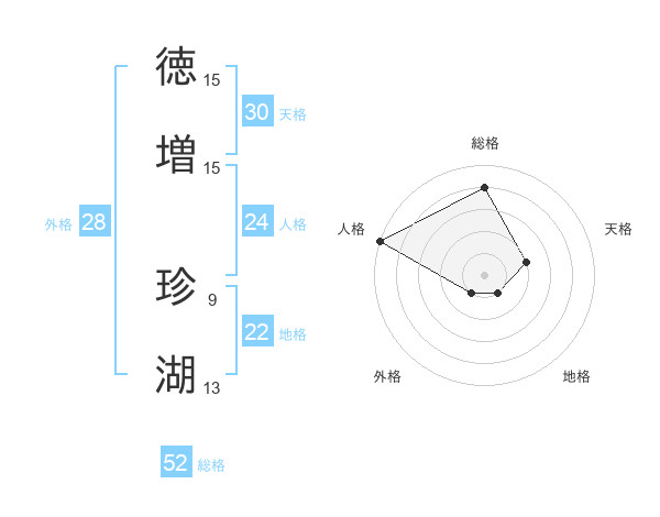 徳増 珍湖さんの総格は52画の4点!