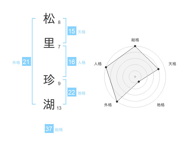 松里 珍湖さんの総格は37画の5点!