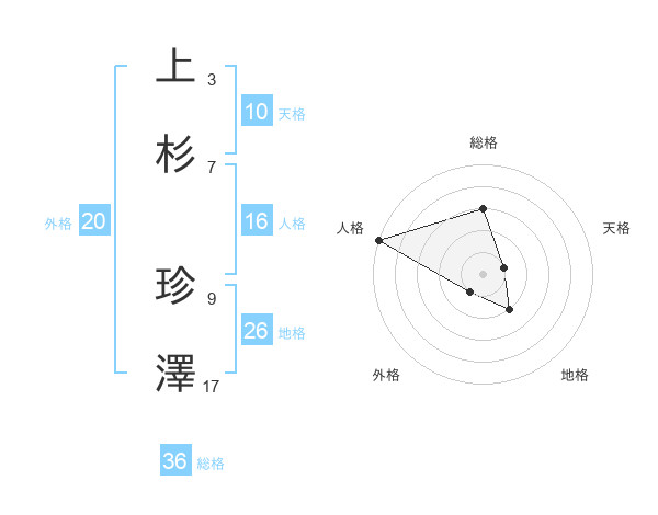 上杉 珍澤さんを姓名の画数から五運を鑑定