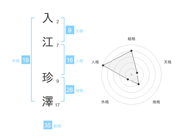 入江 珍澤さんの総格は35画の4点!
