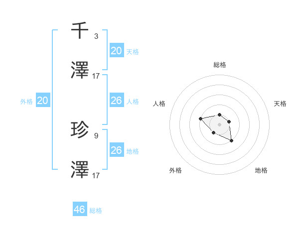 千澤 珍澤さんの天格は20画の1点!