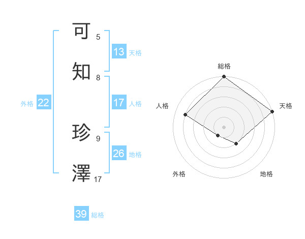 可知 珍澤さんを姓名の画数から五運を鑑定