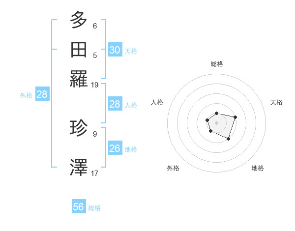 多田羅 珍澤さんを姓名の画数から五運を鑑定