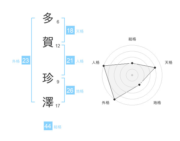多賀 珍澤さんを姓名の画数から五運を鑑定