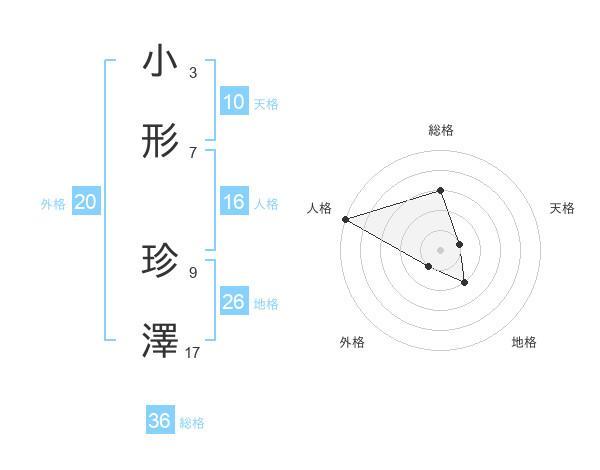 小形 珍澤さんを姓名の画数から五運を鑑定