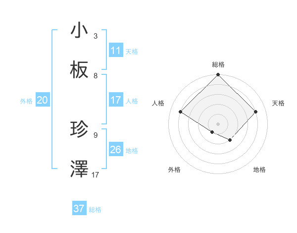 小板 珍澤さんを姓名の画数から五運を鑑定