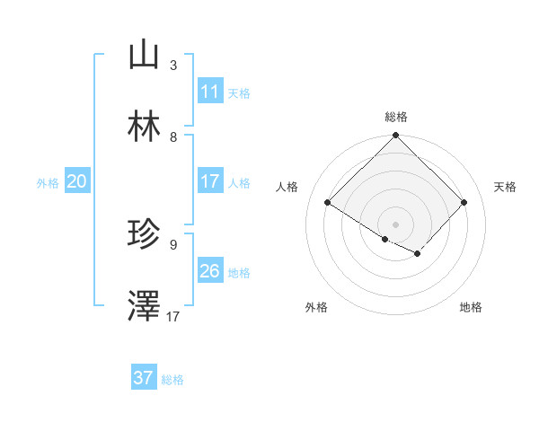 山林 珍澤さんを姓名の画数から五運を鑑定