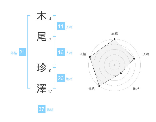 木尾 珍澤さんを姓名の画数から五運を鑑定