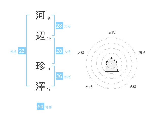 河辺 珍澤さんを姓名の画数から五運を鑑定