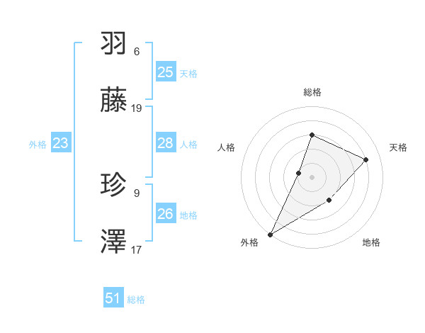 羽藤 珍澤さんを姓名の画数から五運を鑑定